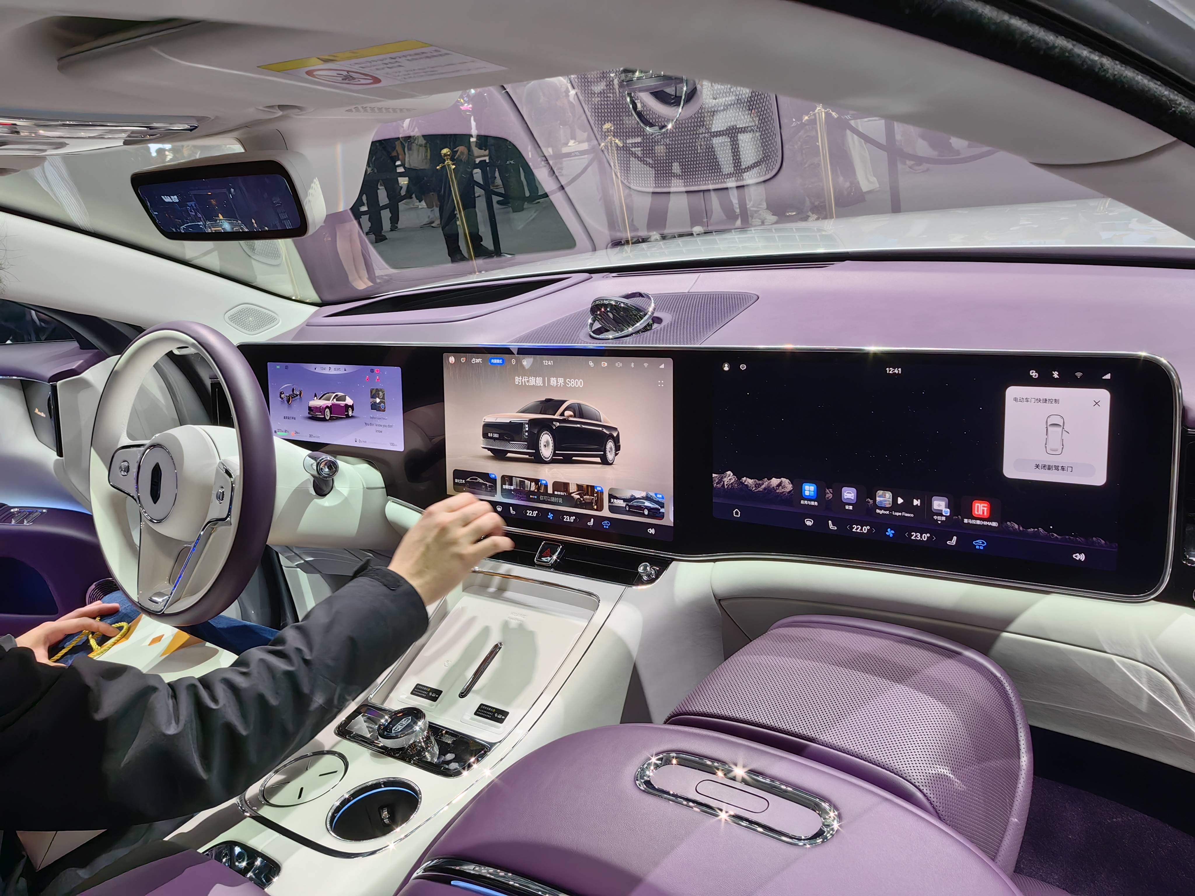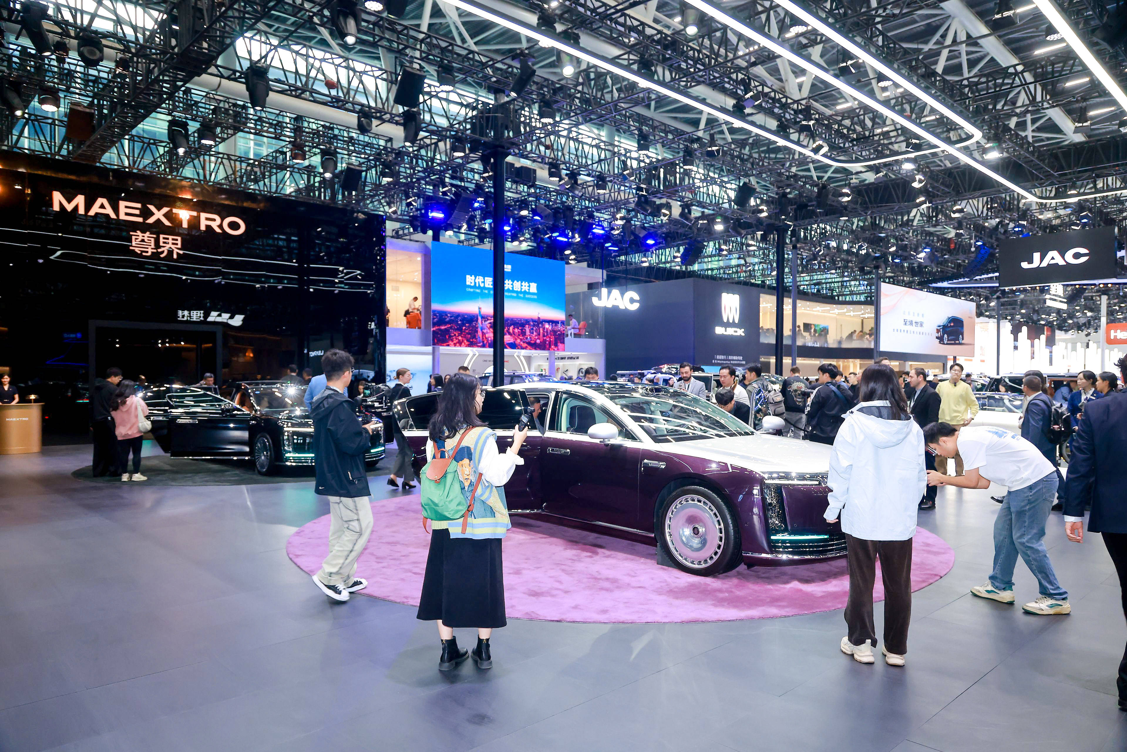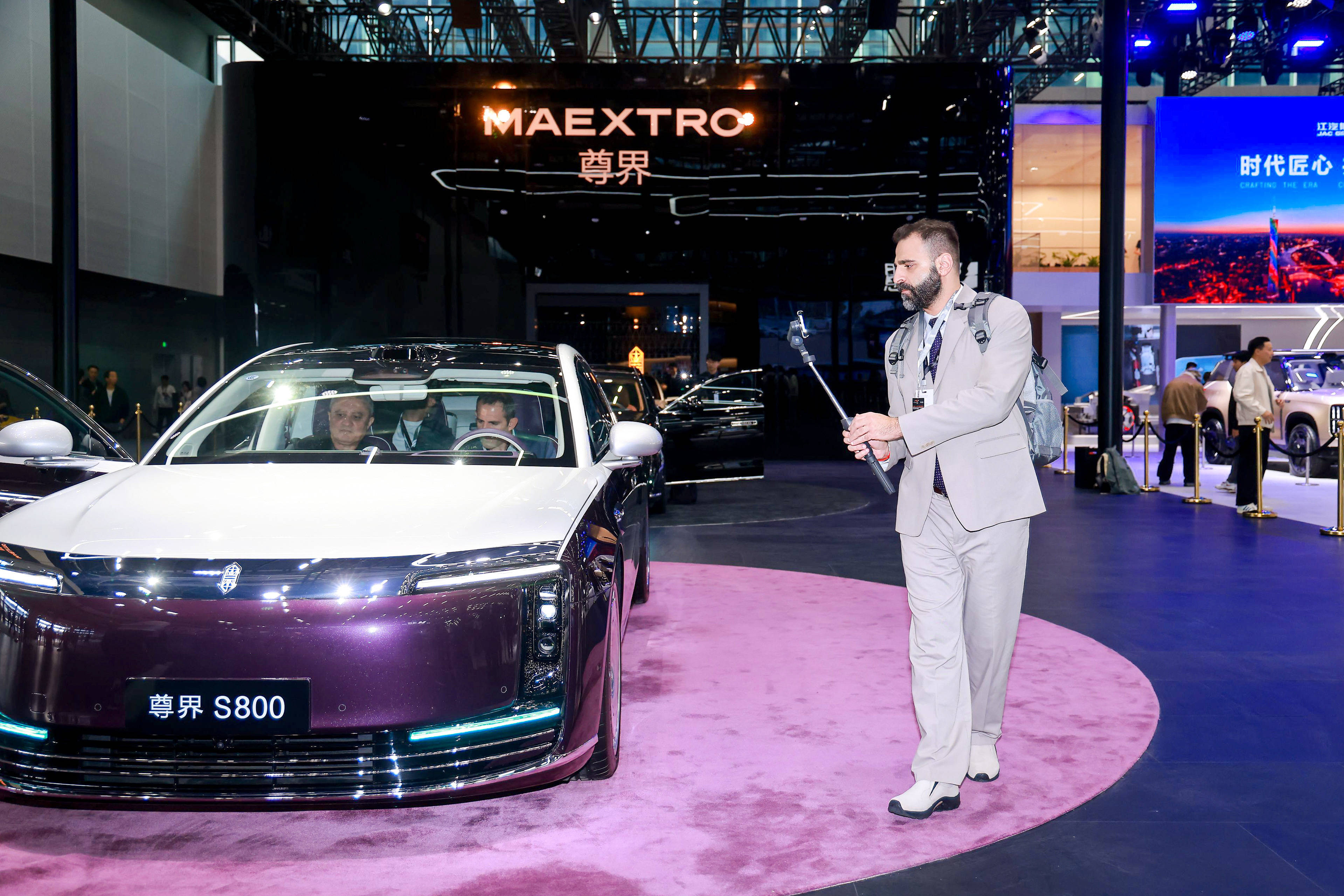 位于江淮展臺C位的尊界S800,不時吸引觀眾駐足觀看、打卡、拍照。包括央視在內的主流媒體還到此直播,向外界傳遞中國百萬級豪華車的高光時刻。