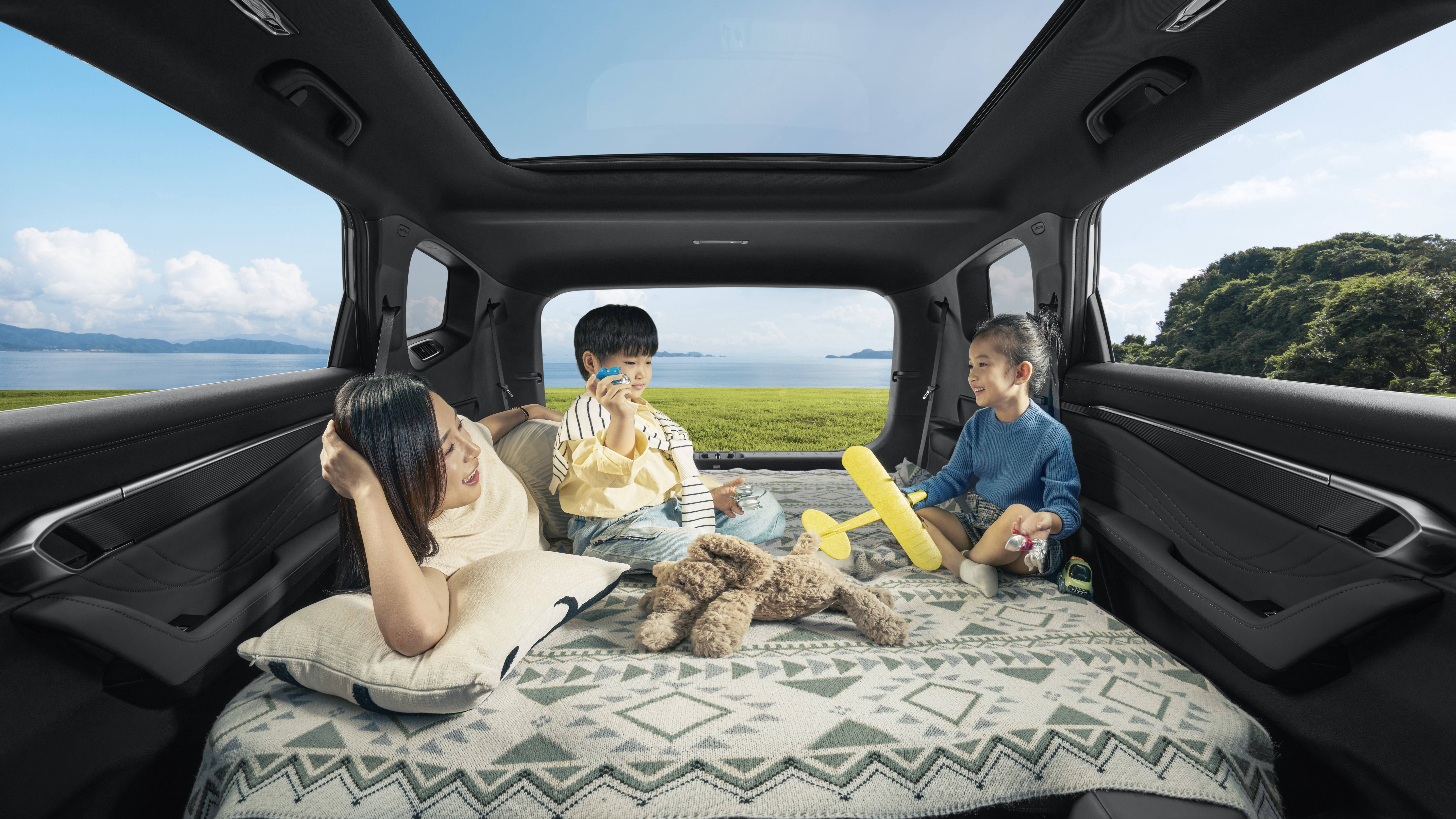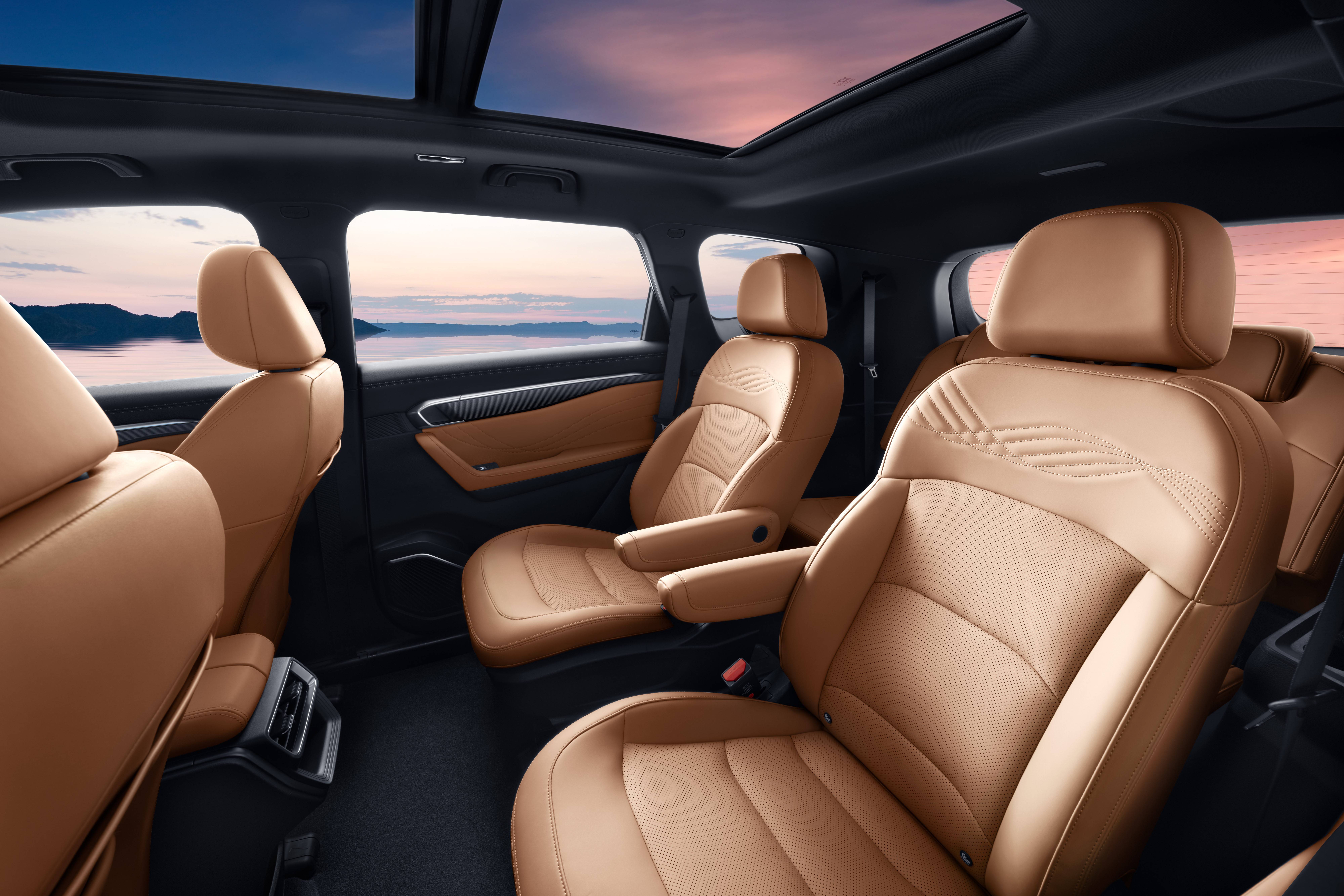 大7座版采用2+3+2的全獨立座椅布局,配備313mm寬的左右雙通道。其第三排乘坐空間寬度達1056mm、頭部空間970.5mm、第三排靠背可實現8檔16°調節。同時,7座版也擁有32種空間組合,二、三排全平放倒后,可拓展為2360升儲物、2.2米大床模式,滿足露營、長途等多種出行場景。此外,全車還擁有49處儲物空間。