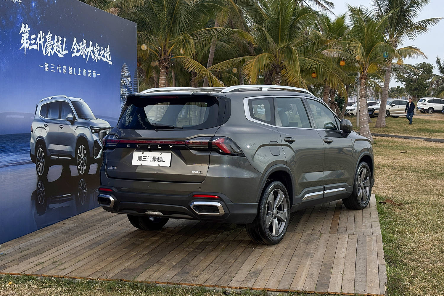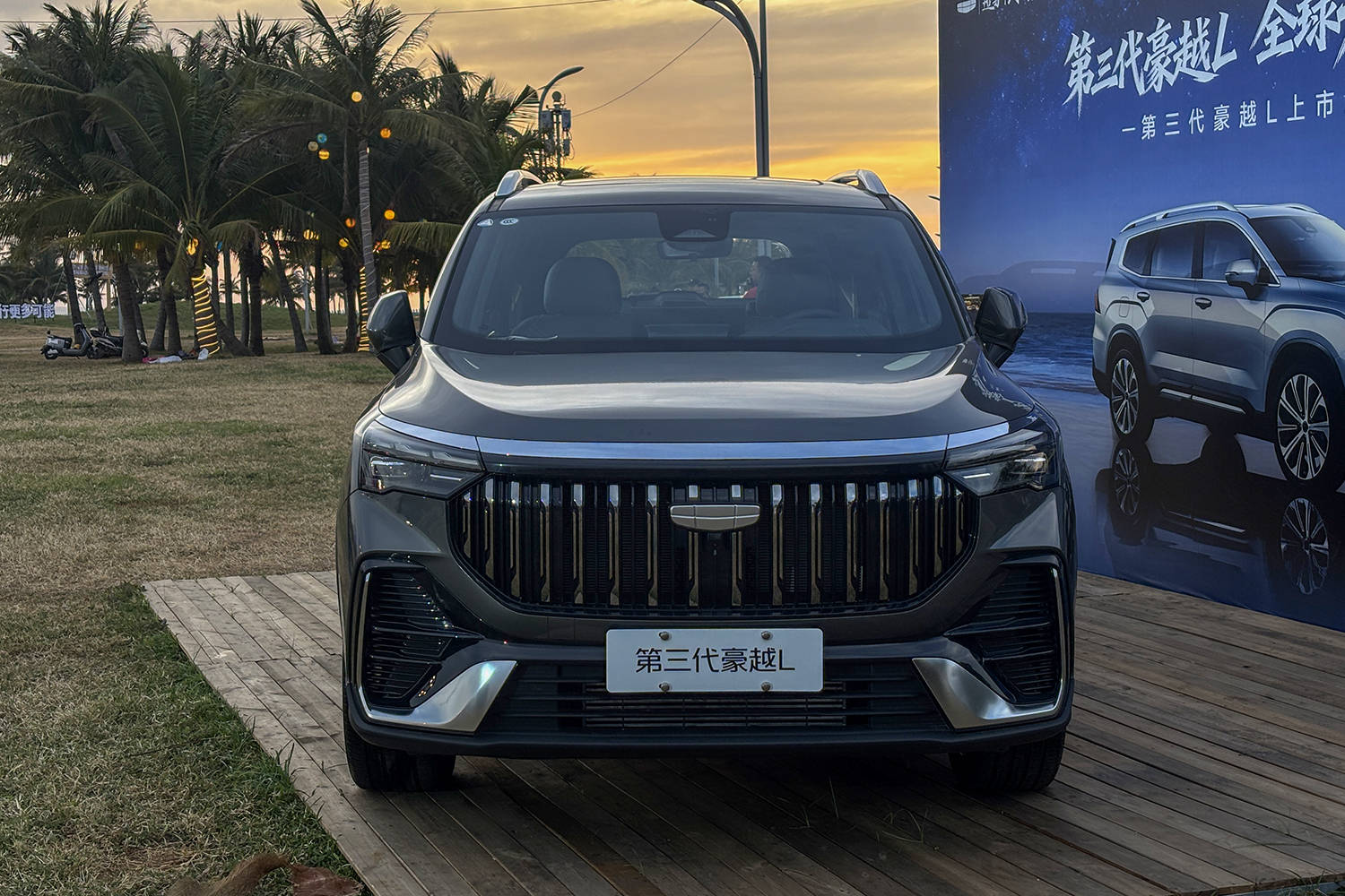 外觀上,第三代豪越L沿襲天地美學家族設計理念。前臉的百川歸流前格柵采用4.0家族化設計,以16根鍍鉻格柵組成高縱深感的直瀑式結構,搭配車頭兩側靈感源自巨石陣且光源覆蓋距離可達180米的巨石之陣LED大燈,營造出較強的辨識度。另外,新車還提供皓月白、星空黑、遠峰灰、雪山銀四種全新車色可選。