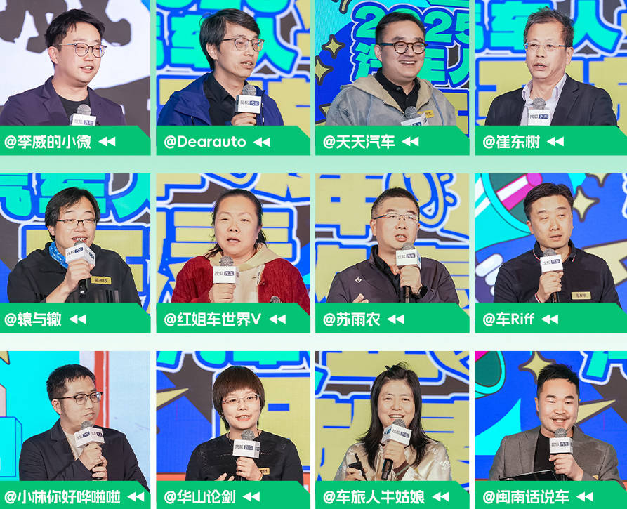 東風風神營銷事業部用戶關系部部長李威,DearAuto創始人汪云青,天天汽車創始人徐鋒,中國汽車流通協會乘用車市場信息聯席分會秘書長崔東樹,星車場CEO袁濤,車市紅點、紅點汽車、紅點新能源創始人張紅,汽車長鏡頭創始人蘇雨農,車Riff主編劉寶華,車壹傳媒聯合創始人/總編輯楊小林,華山論劍V、汽車女記者創始人黃少華,車旅人牛姑娘牛莉,閩南話說車和百草屋機構負責人黃偉沖等車企高管和媒體人,現場分享幽默犀利、金句頻出,剖析他們對行業的深度觀察。