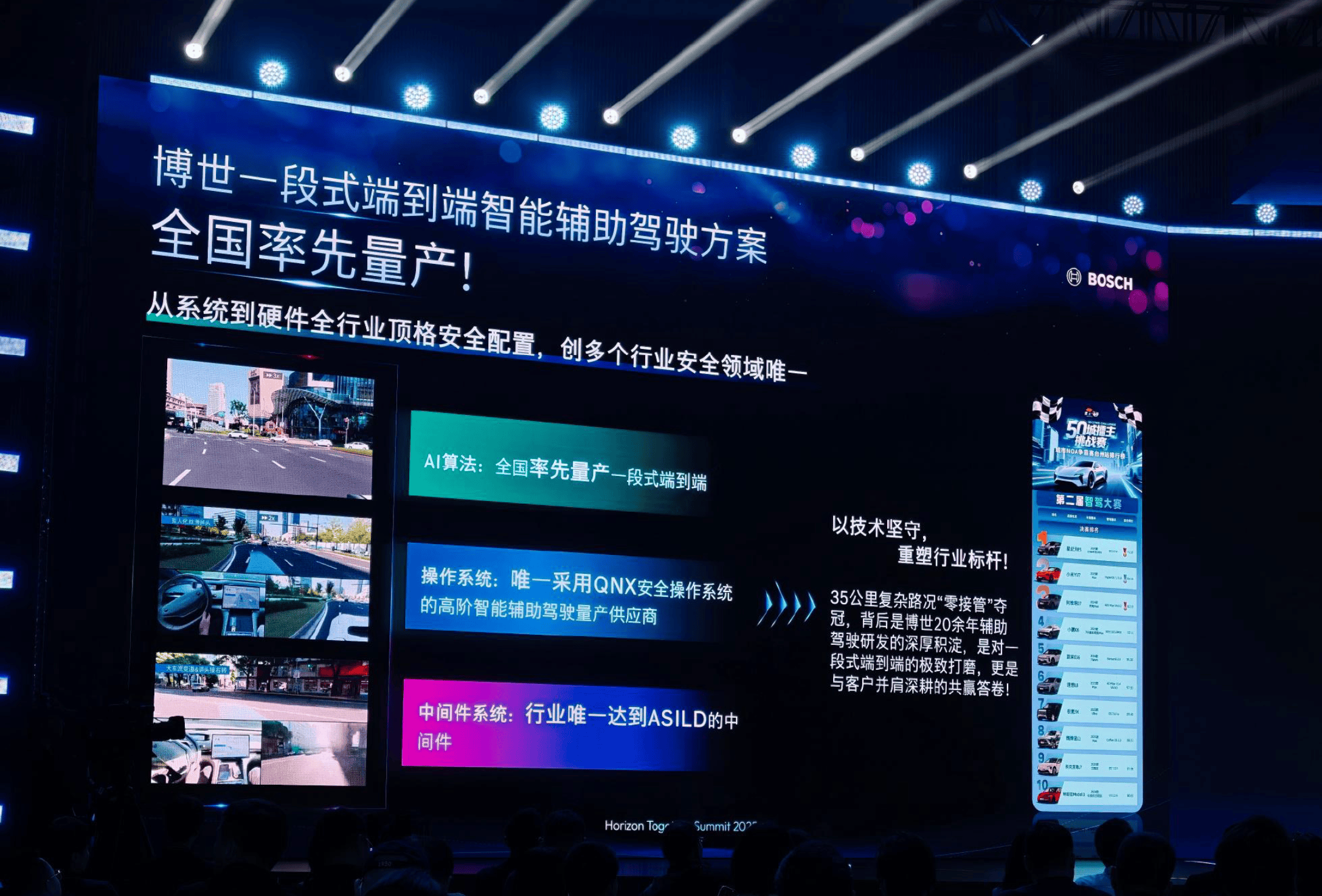 2、博世率先在星途星紀元ES上量產的一段式端到端智能輔助駕駛方案,是目前市場唯二的“真一段式端到端”,另一家就是地平線的HSD。這里面博世提供了一段式端到端的算法方案之外,還是唯一一個采用QNX安全操作系統的高階智能輔助駕駛量產供應商,采用QNX一個是芯片成本,一個是開發費都是千萬級別起跳,但QNX操作系統是外資豪華車企都會選擇的一個方案。第三是中間件系統是行業唯一達到ASIL D標準的,更安全。