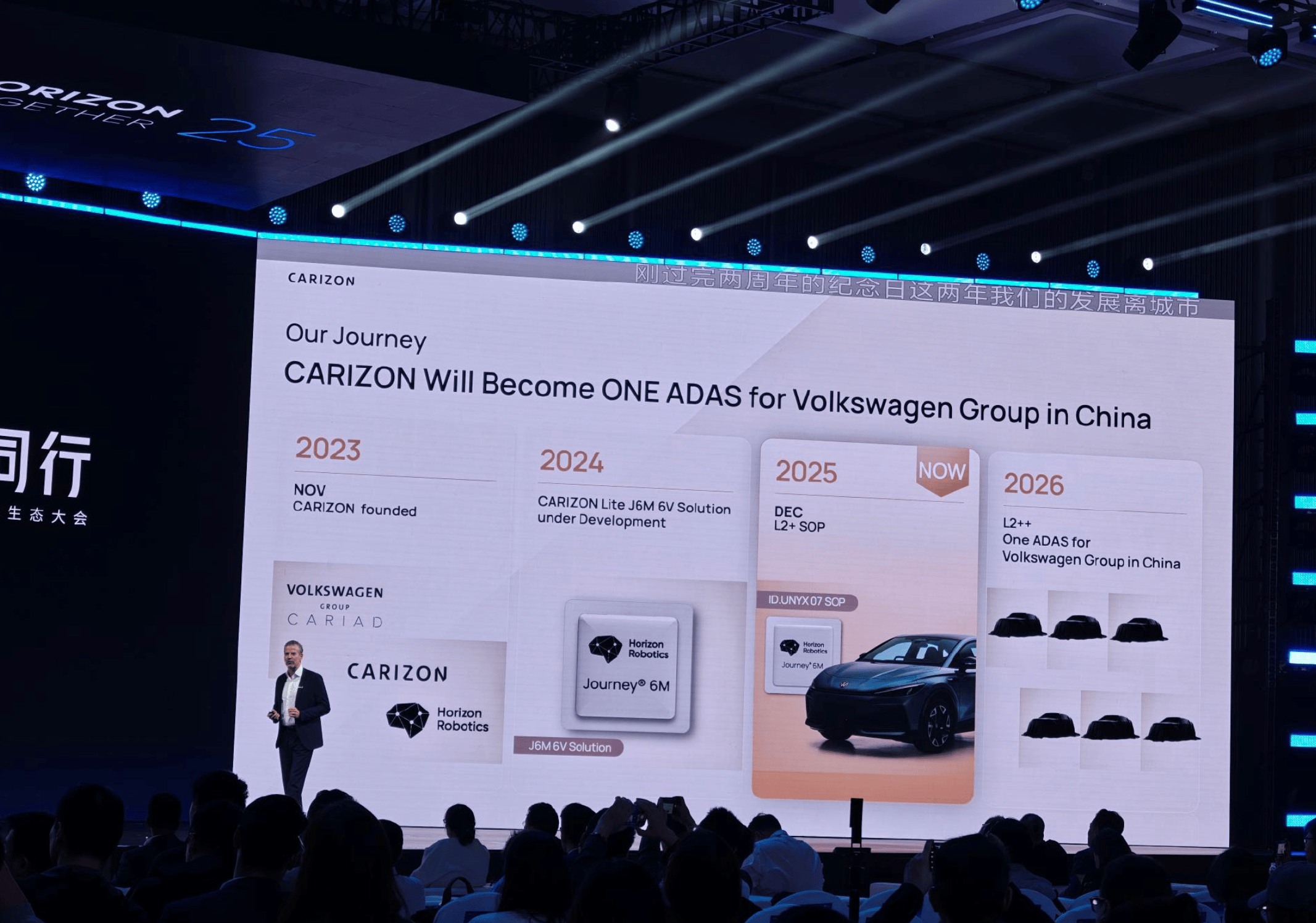 3、大眾和地平線的合資公司CARIZON剛剛成立兩年,現在已經完成了與眾07上的L2+ SOP,基于J6M開發,到了2026年會成為大眾集團在中國的唯一ADAS供應商,會有六款車型采用。