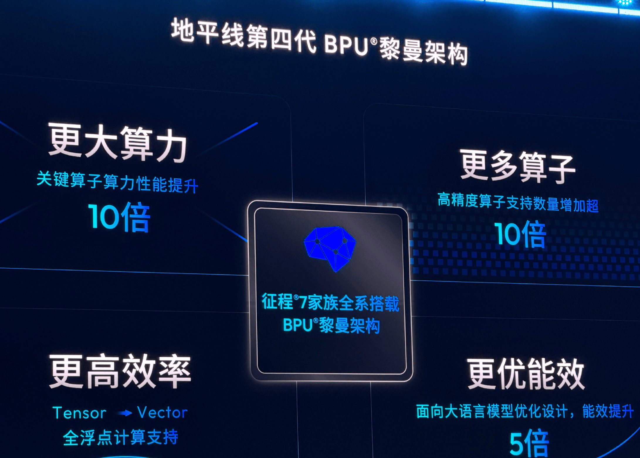 地平線第四代BPU被命名為黎曼架構,主要性能指標包括:關鍵算子算力性能提升10倍、高精度算子支持數量增加超10倍、從Tensor變為Vector全浮點計算支持,面向大語言模型優化設計能效提升5倍。比如,黎曼架構Transformer性能相比2018年的貝葉斯架構提升150倍。